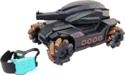 Navyše vďaka druhému pohybovému ovládaču, ktorý môžete pripevniť na ruku, a po spárovaní s tankom, máte možnosť tank ovládať pomocou pohybu vašej ruky. Ovládač ponúka tri druhy pohybu do strán, vďaka čomu sa tank stáva dokonale ovládateľným aj v tých najnáročnejších situáciách. Vydajte sa do akcie s tankom, ktorý má rozmery 28 x 16 x 16 cm a je vyrobený z odolného plastu, takže je ideálny aj pre vonkajšie hranie.