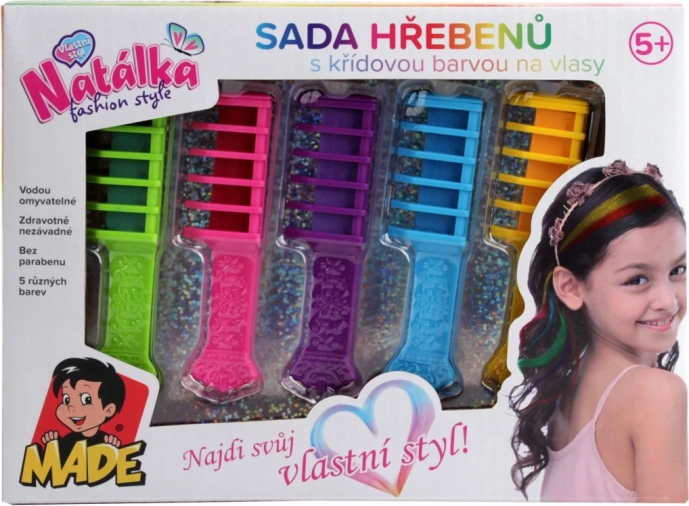 Objavte svet farebných účesov s touto úžasnou sadou hrebeňov. Každý z piatich hrebeňov ponúka inú farbu, čo umožňuje vytvoriť fantastické a jedinečné štýly. Farby sú plne bezpečné pre deti od piatich rokov a vďaka zmývateľnosti je použitie veľmi jednoduché. Neobsahujú parabény, takže môžete byť pokojní ohľadom zdravia vašich detí.