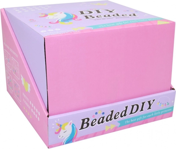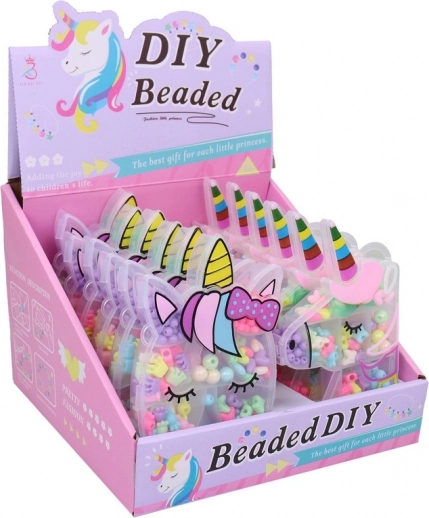 Korálky v boxe Jednorožec podporujú detskú kreativitu, ideálny darček pre dievčatá. Rozmery 15x10 cm, plastový materiál.