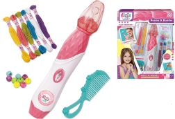 Táto sada korálikov pre zdobenie vlasov zahŕňa všetko, čo vaše dieťa potrebuje na vytvorenie originálnych účesov. Použitie je jednoduché – bavlnky sa pripevnia na vlasy a pomocou diamantového tlačidla sa pramienok vlasov stočí. Potom jednoducho zaistite koniec pramienka korálikom a nový účes je hotový.