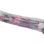 Tento detský golfový kočík je ideálnym spoločníkom pre malé slečny od 3 rokov. Jeho výška 74 cm, šírka 14 cm a hĺbka 11,5 cm zaisťujú komfortné hranie. Kočík je vybavený pevnou kovovou konštrukciou pre dlhú životnosť a má štýlové textilné prvky, ktoré dodávajú elegantný vzhľad.
