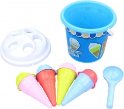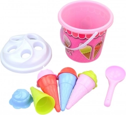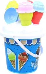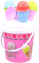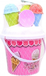 Súčasťou setu je vedro s rúčkou pre jednoduchú manipuláciu a prenášanie na pláži či pieskovisku. Vedro je ozdobené efektnými grafikami zmrzliny.