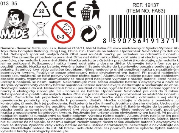 Vyrobená z odolného plastu, táto hračka vydrží mnohé dobrodružstvá vašich detí.