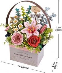 RoboTime 3D drevená skladačka Kvetinový Košík prináša jedinečný zážitok z tvorenia. Kvety ako ružová ľalia, červená ruža či ružový karafiát symbolizujú obdiv, vášeň a vďačnosť. 3D modelovanie podporuje rozvoj jemnej motoriky, logického myslenia a trpezlivosti. Skvelá výzdoba alebo darček pre kreatívcov. Skladačka obsahuje 428 dielikov presne vyrezaných laserom, ktoré jednoducho do seba zapadajú, čím vzniká stabilný a odolný model. Košík má otvory pre jednoduché umiestnenie kvetov podľa vašej fantázie.
