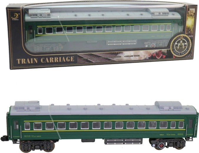 Vagón pre cestujúcich s osvetlením, ideálny doplnok k vašej vlakovej súprave, zabezpečí množstvo zábavy pre milovníkov železníc. Plastová konštrukcia zabezpečí dlhú životnosť hračky.