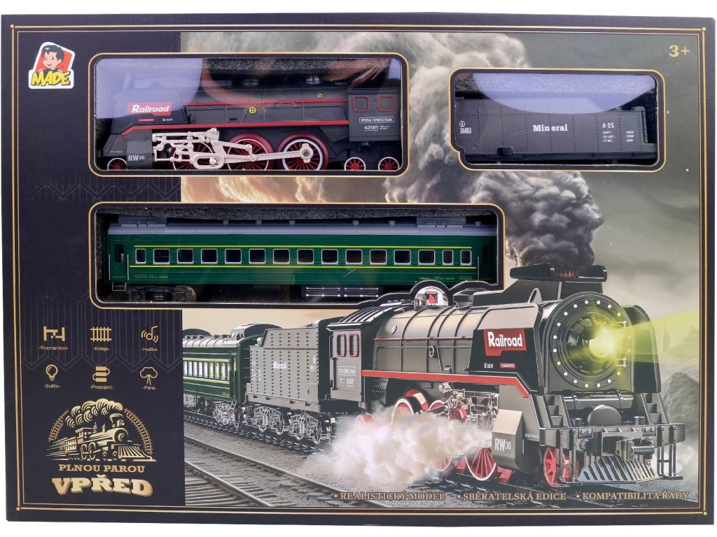 Tento vlakový set je dokonalou voľbou pre všetkých malých milovníkov železnice. Súprava obsahuje realisticky vyzerajúci parný rušeň, ktorý nielen osvetľuje cestu, ale tiež "zahúka", keď prechádza okolím. Vlak je vybavený unikátnym efektom pary, ktorá vychádza z jeho komína, čo dodáva hre napätie a autentickosť.