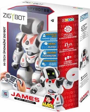 Robot Zigybot James je špeciálne navrhnutý pre zábavu a učenie. Vďaka možnosti programovať až 50 rôznych akcií si deti môžu vytvoriť vlastné scenáre a zároveň sa naučiť základy programovania. James je ovládateľný nielen dálkovým ovládačom, ale reaguje aj na zatlieskanie. Vďaka tomu si deti môžu vybrať spôsob ovládania, ktorý je pre ne najzábavnejší.