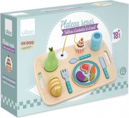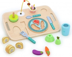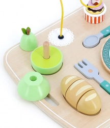 Tento drevený podnos s aktivitami od značky Vilac ponúka deťom možnosť skvelého hrania pri rozvoji jemnej motoriky a koordinácie. Obsahuje stohovateľnú hrušku, krájací bochník chleba a zmrzlinu s pohyblivými dielmi. Ideálny pre detské ruky.