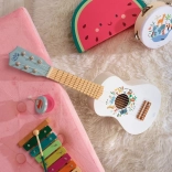 Táto gitara nielenže vyzerá krásne, ale je aj funkčnou pomôckou pre rozvoj detí. Vďaka nej sa deti môžu cítiť ako skutoční hudobníci a učiť sa dôležité zručnosti ako jemnú motoriku a koordináciu ruka-oko.