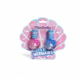 MARTINELIA Let's be Mermaids duo laky na nechty obsahuje 2 laky na nechty, ktoré možno ľahko odstrániť teplou vodou a mydlom. Šetrné k detským nechtom, nie je potrebný odlakovač.