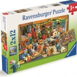 Objavte radosť a kúzlo Vianoc s krásnymi puzzlemi z továrne na hračky. Táto krabička obsahuje dve detské puzzle, každé s 12 dielikov, čo zaručuje rýchle a príjemné skladanie. Vďaka rozmerom cca 26 x 18 cm sa každé puzzle zmestí na malý stôl či hraciu plochu. Skvelý spôsob, ako zabaviť malé deti a priniesť im vianočnú náladu.