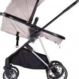 Sedenie ľahko otočíte po smere aj proti smeru jazdy, operadlo nastavíte do 3 polôh a päťbodové pásy s polstrovaním zaistia bezpečie. Rodičia ocenia kompaktné skladanie jednou rukou, veľký košík na nákupy a kvalitne potiahnutú rukoväť pre pohodlné riadenie.