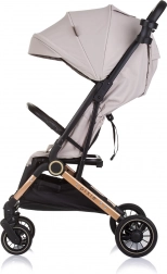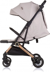 Kočík Chipolino Pixie Tiramisu sa pýši ľahkým a kompaktným dizajnom, ktorý možno ľahko zložiť jednou rukou a prenášať pomocou vysúvacej rukoväte, rovnako ako kufor. Tento kočík je vybavený rýchloupínacími odpruženými kolesami s článkovou brzdou na zadných kolesách pre bezpečnú jazdu.