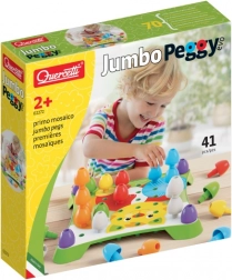 Mozaika Jumbo Peggy Evo je skvelá vstupná hračka do sveta mozaík pre deti od 2 rokov. Extra veľké kolíčky sa deťom dobre držia, bezpečne sa vkladajú do perforovaných kariet a vďaka stohovateľnému tvaru podnecujú aj stavanie veží. Hra rozvíja jemnú motoriku, trpezlivosť a tvorivosť, zároveň podporuje rozpoznávanie farieb a tvarov.
