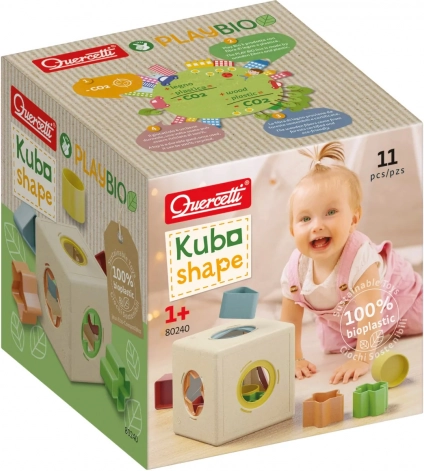 Obľúbená vkladačka QUERCETTI pomáha deťom od 12 mesiacov spoznávať tvary a farby, rozvíja jemnú motoriku, koordináciu oko–ruka a logické myslenie. Klasická tvarovacia kocka zo 100% recyklovateľných materiálov PLAYBIO obsahuje 11 farebných dielikov s bezpečnými, zaoblenými hranami.