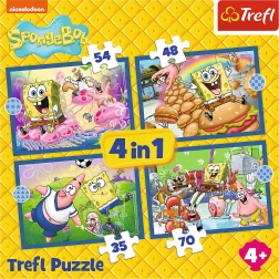 TREFL prináša zábavu pre celú rodinu so štyrmi puzzle SpongeBobov život v jednom balení. Každé puzzle v sete má iný počet dielikov - 35, 48, 54 a 70, čo poskytuje jedinečnú príležitosť pre rôzne úrovne zručností.
