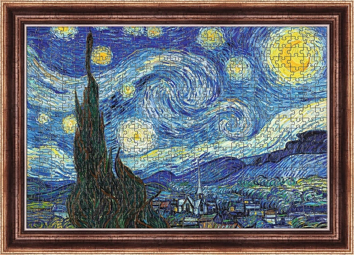 Skladanie puzzle nikdy nebolo štýlovejšie s rámovým puzzle Hviezdna noc od TREFL. Výsledok nielenže baví, ale predovšetkým zdobí váš interiér.