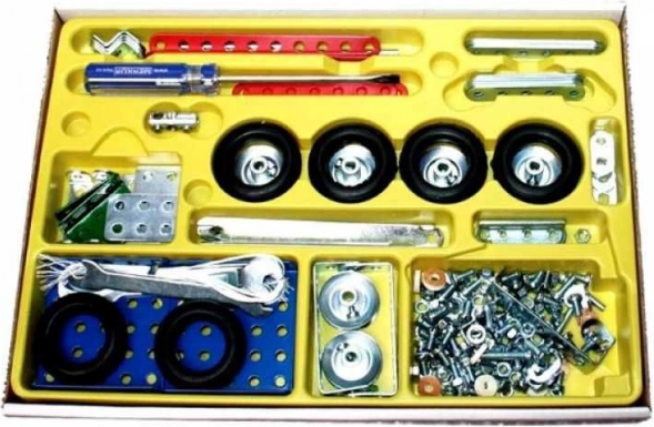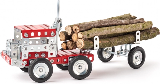 Kovová stavebnica Merkur je evergreen českých dielní. V tejto sade nájdete všetko potrebné na zostavenie kamiónu a ďalších deviatich modelov. Diely z pevného kovu, skrutky a matičky držia konštrukcie spoľahlivo pohromade, takže si deti aj dospelí užijú stabilné, funkčné modely a opakované stavaníe.