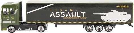 Štýlový kamión s návesom s dĺžkou 19 cm poteší každého malého vodiča. Ponúka voľnobeh pre plynulú jazdu, kovovú kabínu pre vyššiu odolnosť a kvalitné spracovanie. K dispozícii v rôznych farebných variantoch, vhodné pre deti od 3 rokov.