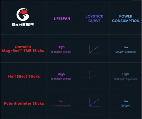 - GameSir Mag-Res TMR (kombinácia potenciometra a Hall efektu)
