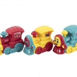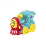 Stačí mašinku ľahko postrčiť a rozbehne sa sama. Veselé farby priťahujú pozornosť a podporujú fantáziu pri hraní vlakových dobrodružstiev doma aj na cestách.