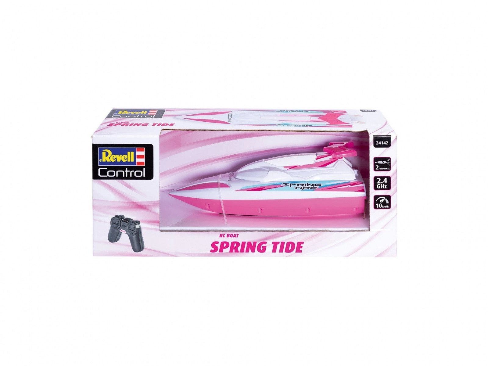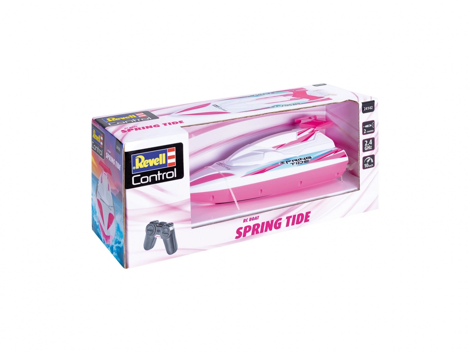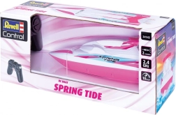 Revell Control RC loď Spring Tide v ružovej farbe prináša akčnú vodnú zábavu pre deti. Tento nádherne farebný model s rozmermi 235 mm na dĺžku, 75 mm na šírku a 75 mm na výšku je ideálny pre detské hry na mori alebo v bazéne.