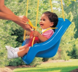 Hojdacie kreslo obsahuje špeciálne bezpečnostné opatrenia, ktoré deťom zabezpečujú pokojný a bezstarostný čas. Jeho dizajn s miestom na nohy a stabilnou konštrukciou z dvoch lán z neho činia jednu z najbezpečnejších možností na trhu. Vysoké operadlo chráni deti pred nakláňaním dozadu, zatiaľ čo predná lišta zabraňuje vypadnutiu. Priložený pás s prackou poskytuje maximálnu bezpečnosť a možnosť odstránenia prednej lišty a pásu je ideálna pre staršie deti. Sada obsahuje tiež žlté laná pre zavesenie hojdačky.