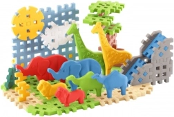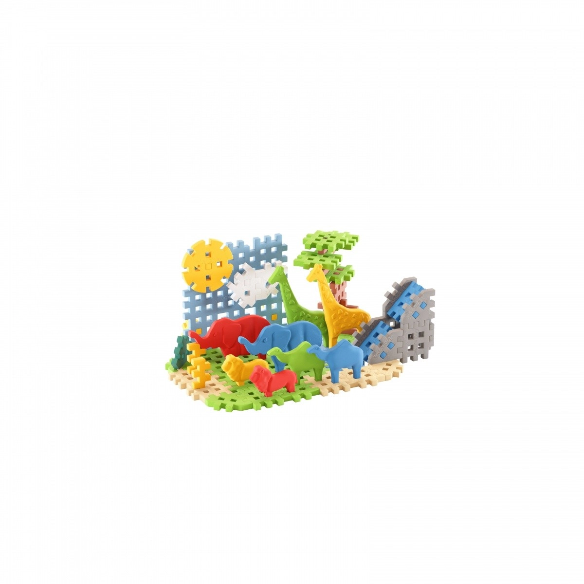S stavebnicou Mini Waffle - Savana Zvieratá deti môžu tvoriť vlastný fantastický svet plný afrického života. Obsahuje 50 dielcov rôznych tvarov, ktoré umožňujú vytvoriť scenické prvky, ako je malebný vodopád, a pôsobivé pozadie savany. Súčasťou je aj levia rodina na slnku, slony pri napájadle a žirafy ďalej na horizonte.