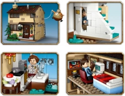 Stavebnica LEGO Harry Potter Zobia ulica 4: Návšteva tety Marge prináša detailný rodinný dom Dursleyovcov so zimnou záhradou a otváracou konštrukciou pre ľahký prístup k bohato vybavenému interiéru. V kuchyni s jedálňou nájdete odnímateľný stôl, v obývacej izbe a spálňach množstvo tematických doplnkov a nechýbajú ani tajné dvere do komôrky pod schodmi. Na okne Harryho izby sú odnímateľné mreže, ktoré pripomenú slávnu scénu s útekom.