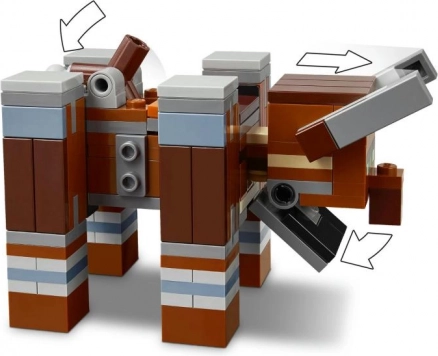Figúrka devastátora ponúka realistickú hernú funkciu: pomocou páčky dokáže cvakať čeľusťami a útočiť hlavou. K tomu získate minifigúrky: vesničana strážcu, kapitána nájazdu, osadníka kamenára a obrancu, plus prasiatko. Bohatá výbava zahŕňa diamantový meč a prilbu, kušu, železnú sekeru, pochodne, tréningovú figurínu a ďalšie prvky pre neobmedzené príbehy.