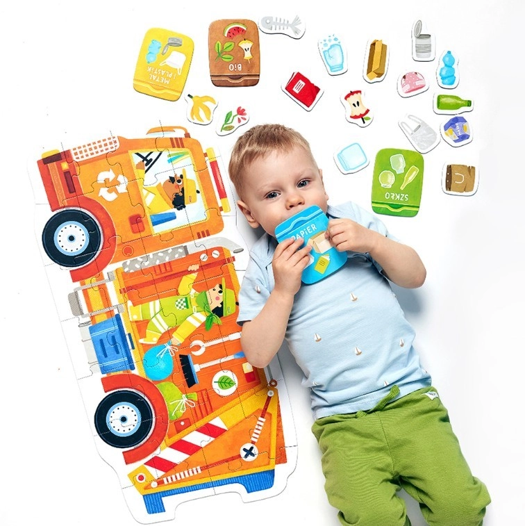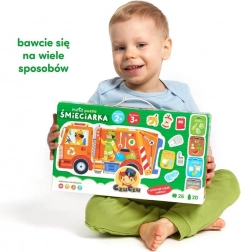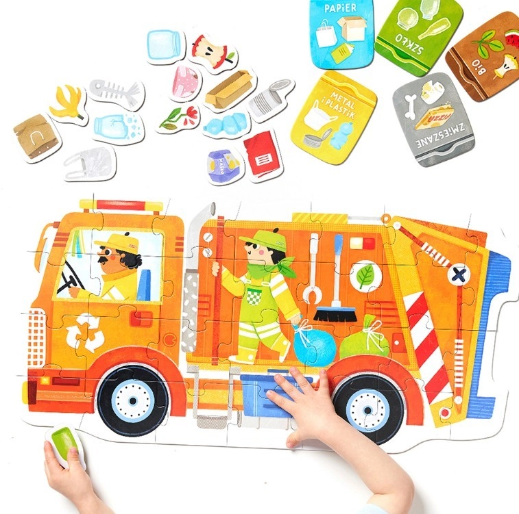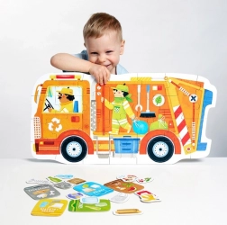 Puzzle Moto - Smetiarske auto je jedinečná vzdelávacia súprava pre zvedavých objaviteľov. Užite si kreatívne hry a zábavnú výučbu princípov triedenia odpadu a ekológie s touto skvelou darčekovou súpravou.