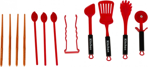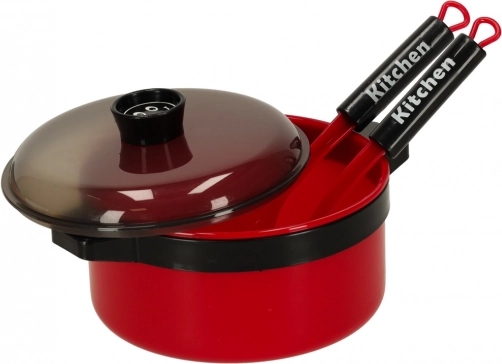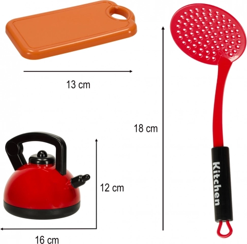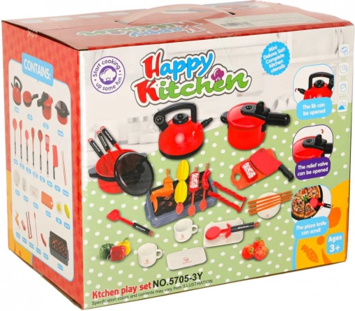 Obsahuje hračky ako gril, panvicu, kanvicu a ďalšie užitočné propriety, ktoré deti potrebujú pre hranie sa na kuchára.