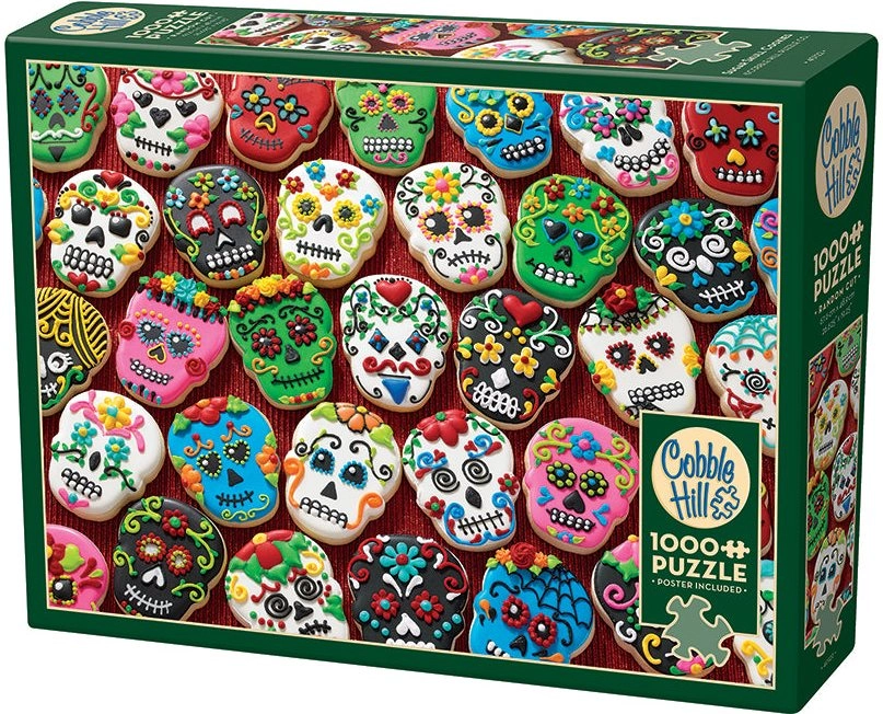 COBBLE HILL Puzzle Sušenkové lebky ponúka unikátnu tlačovú techniku, kde sa dieliky nekopírujú podľa štandardnej mriežky, čo zvyšuje náročnosť a výnimočnosť skladania.
