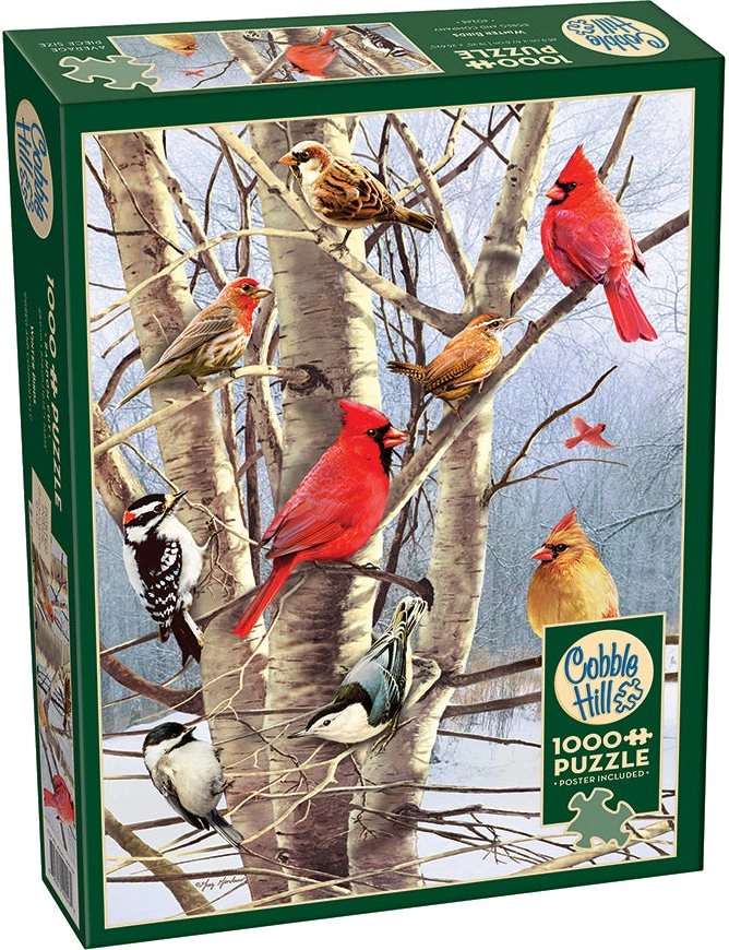 Puzzle COBBLE HILL Vtáky v zime s 1000 dielikmi ponúka jedinečné tvarovanie a vyššiu náročnosť vďaka neobvyklému tvarovaniu dielikov, čo prináša unikátnu výzvu pre všetkých milovníkov puzzle.