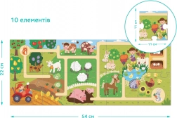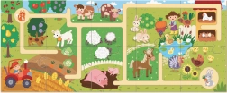 DODO Puzzle Labyrint Moja Farma upúta deti svojou farebnou ilustráciou farmárskeho života - od traktorov cez záhrady až po roztomilé zvieratká ako kravičky, prasiatka, králiky, ovečky, kuriatka a káčatká. Deti sa učia zábavnou formou spoznávať farmu a jej obyvateľov.