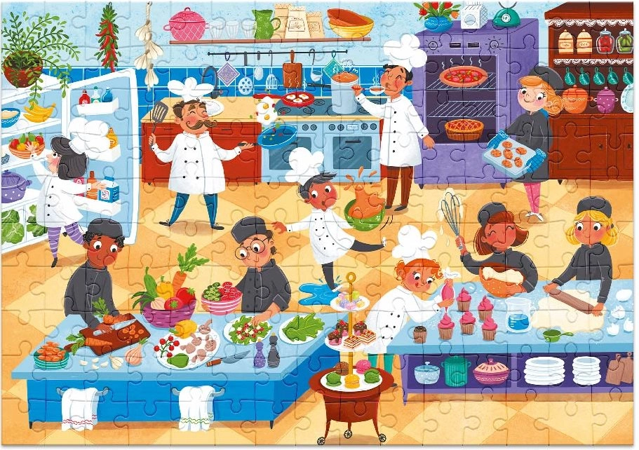 Prežite dobrodružstvo v kuchyni s týmto unikátnym puzzle o 150 dieloch! Pri skladaní sa deti stanú kuchármi a precvičia nielen svoju tvorivosť, ale aj jemnú motoriku. Po zložení je výsledný obraz puzzle o rozmere cca 47 x 33 cm, takže je ideálny k zarámovaniu a vystaveniu v detskej izbe.