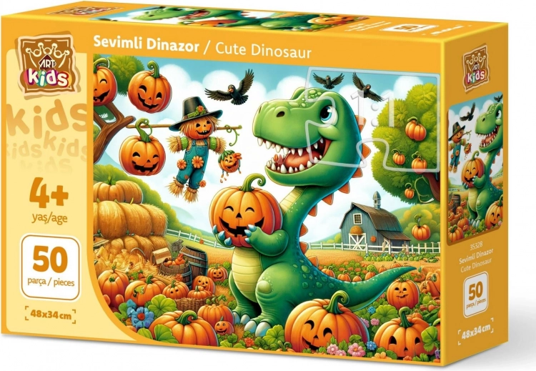 Puzzle s roztomilým dinosaurom o 50 dielikoch, perfektné pre deti na rozvoj motorických a kognitívnych schopností.