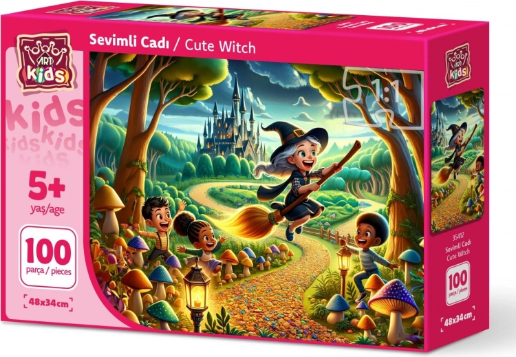 Puzzle Roztomilá čarodejnica so 100 dielikov, rozmery 48x34 cm. Ideálne pre milovníkov skladania.