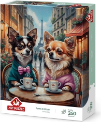 Puzzle Štýlové Labky je ideálna voľba pre milovníkov zábavného skladania! Skladá sa z 260 dielikov a je perfektným spôsobom, ako si užiť kreatívny čas a zároveň získať nádherný obraz so štýlovými labkami.