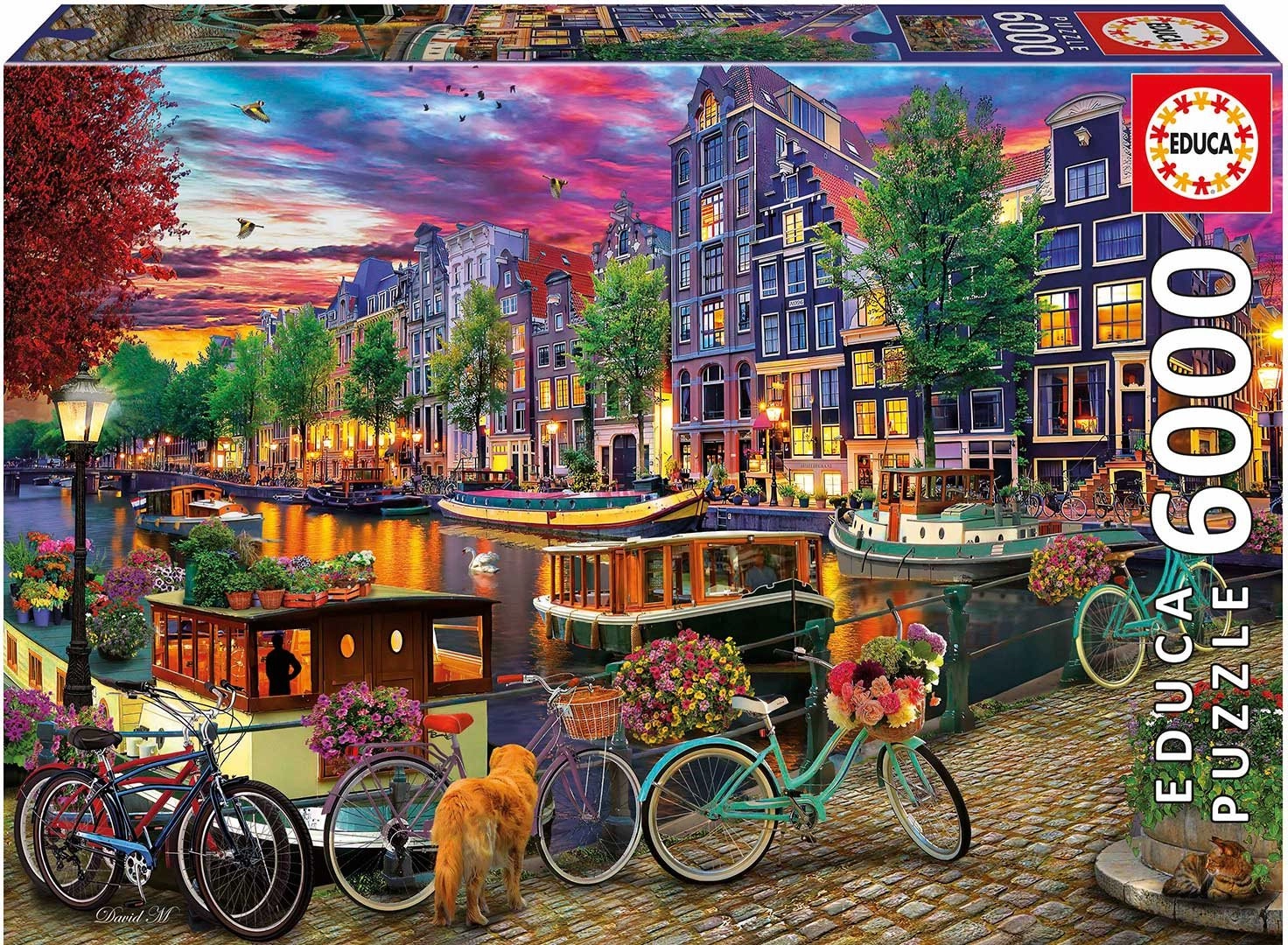 Educa Puzzle Bicykle v Amsterdame s 6000 dielikov prináša jedinečný zážitok skladania s témou malebných ulíc Amsterdamu.