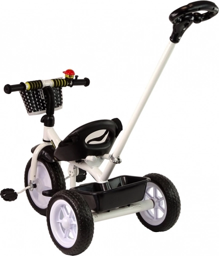Trojkolka je vyrobená z kvalitných materiálov, čo prispieva k bezpečnosti a stabilite dieťaťa. Vďaka odnímateľnej rukoväti pre rodičov je zaručená ľahká ovládateľnosť a riadenie.