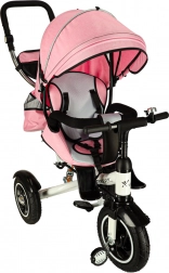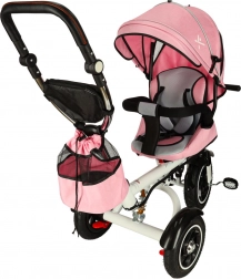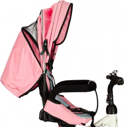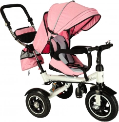 Atraktívny a moderný dizajn spolu s nastaviteľnou rukoväťou umožní ovládanie smeru jazdy rodičom. Strieška s priehľadným okienkom poskytuje ochranu proti slnku a dažďu, zároveň umožňuje sledovanie dieťaťa. Trojkolka je vybavená odrazkami, zabudovanou brzdou a 2-bodovými bezpečnostnými pásmi pre maximálnu bezpečnosť. Je konvertibilná, čo z nej činí ideálneho spoločníka od ranného veku dieťaťa až do jeho šiestich rokov.