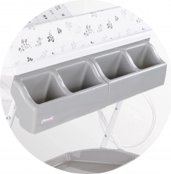Vanicka s prebaľovacou podložkou a stojanom Aqua Friends od značky Chipolino je ideálna pre novorodencov a deti do 12 mesiacov. Tento prebaľovací pult je tiež vaničkou, keď zložíte prebaľovaciu podložku. Súčasťou je skladací stojan pre jednoduché uskladnenie a priehradka na príslušenstvo.