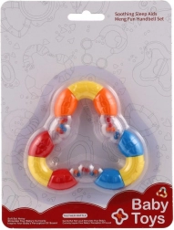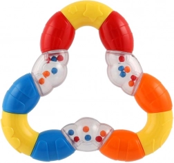 Toto multifunkčné hrkalka a hryzátko v tvare trojuholníka je navrhnuté špeciálne pre najmenšie deti. Vďaka flexibilnému plastu je jednoduché uchopenie aj pre malé rúčky a ponúka príjemný povrch pre hryzenie, čo pomáha upokojiť ďasná. Jemné hrkanie zároveň podporuje sluchové vnímanie a zaujme pozornosť dieťaťa.