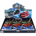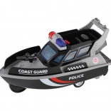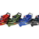 Vyplávajte na dobrodružstvá s týmto záchranárskym člnom z kvalitného plastu! Model s dĺžkou 14 cm je navrhnutý tak, aby sa po natiahnutí vďaka zotrvačníkovému pohonu bez potreby batérií rozbehol vpred.