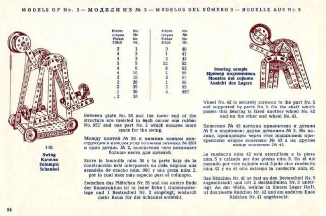 Súčasťou balenia je veľká, 94-stranová návodová knižka v štýle 30. rokov, koncipovaná pre sady MERKUR Classic C03, C04 a C05. Poskladáte až 141 rôznych modelov – od vozidiel a strojov až po technické mechanizmy. Ideálny darček pre kreatívne deti od 8 rokov, technických nadšencov aj milovníkov retro dizajnu.
