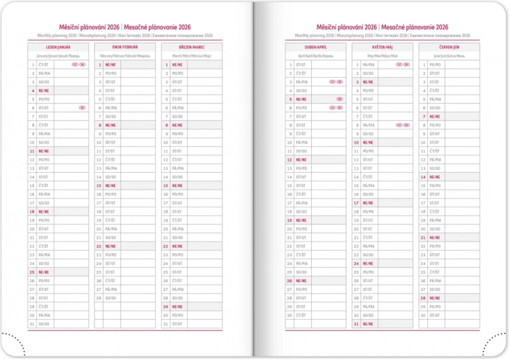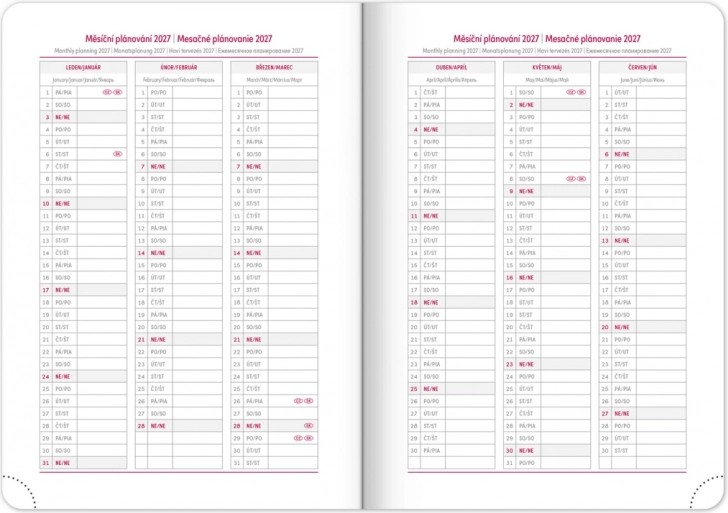 - Mesačný plánovací kalendár 2026 a 2027