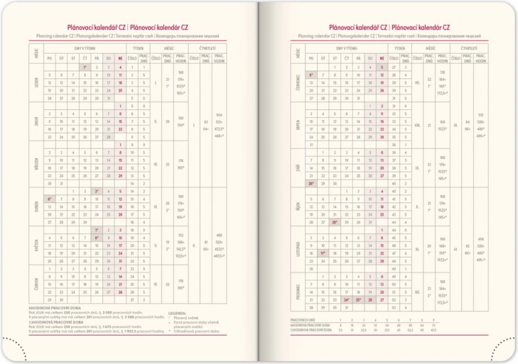 - Týždenný rozvrh s česko-slovenským kalendárom a podporou angličtiny, nemčiny, maďarčiny a ruštiny.