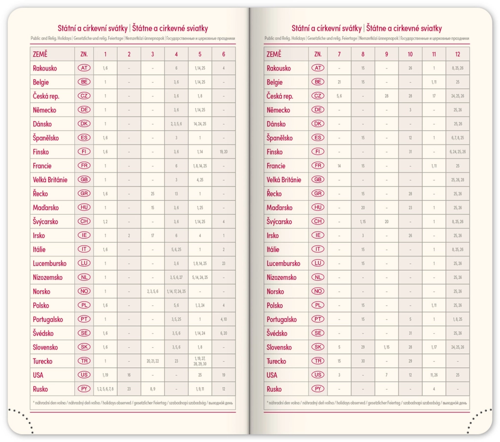 - Kalendárium od decembra 2025 so všetkými československými sviatkami a medzinárodnými sviatkami.
