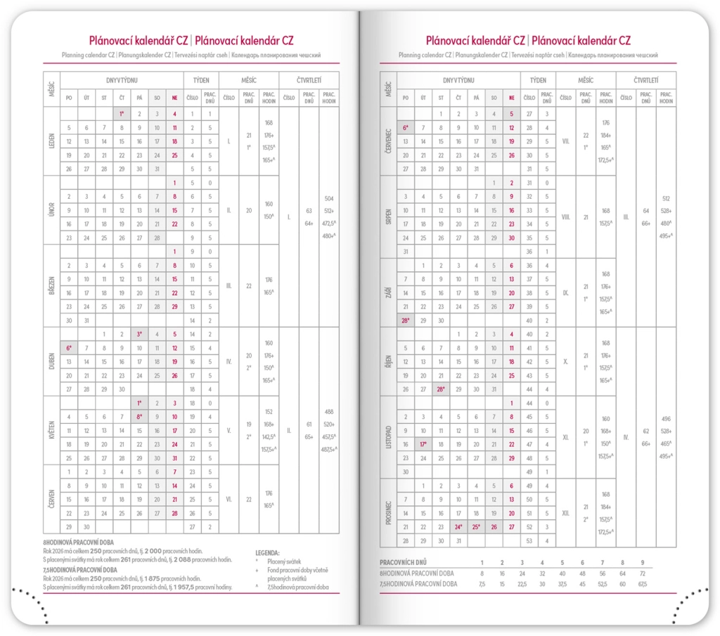 - Pracovný plánovací kalendár s dostatkom priestoru na úlohy